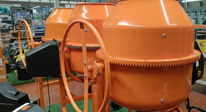 Бетономешалки служат для получений порций раствора бетона или смесей для строительных работ полуручным способом. Представляют из себя барабан с приводом и электродвигателем, где цемент смешивается с водой и разными наполнителями: отсевом, щебнем, керамзитом, шлаком и песком. Различаются приводом, емкостью и мощностью.